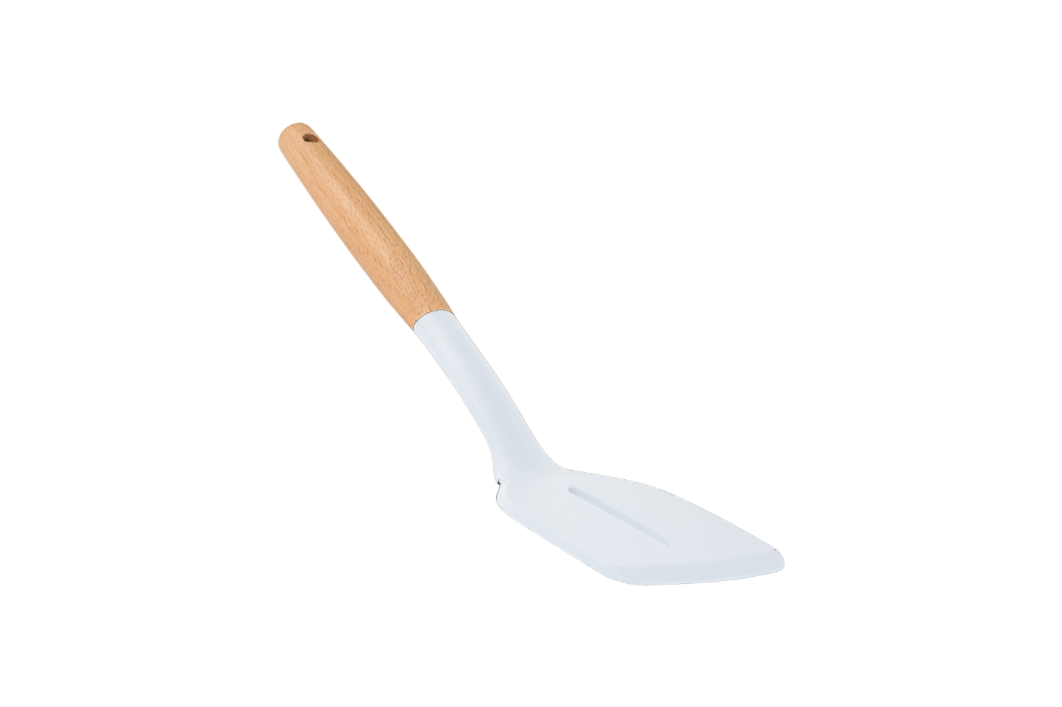A practical and elegant food spatula made of high-quality silicone with a durable wooden handle, designed to facilitate the smooth stirring and serving of food. It features slots that help easily strain liquids and oils, making it ideal for daily use in the kitchen. It combines durability and comfort in use, with a modern design that adds an elegant touch to your kitchen tools.
