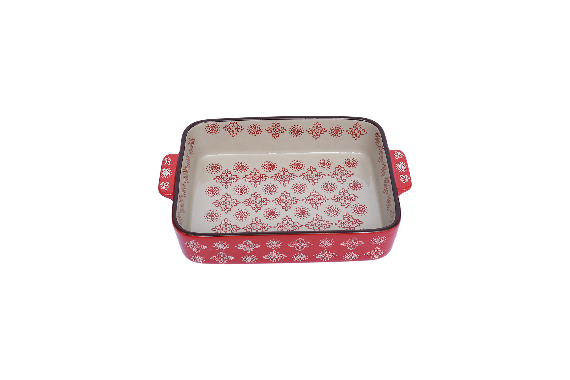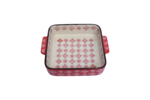 A luxurious porcelain tagine, precisely designed to withstand oven heat, making it ideal for preparing the most delicious dishes. This tagine features an attractive red color and high-quality heat-resistant porcelain, ensuring exceptional durability and performance. Its elegant rectangular design makes it perfect not only for cooking but also for serving directly at the table, adding a touch of sophistication to any dining experience. For added convenience, it is safe for use in the microwave and dishwasher, combining practical functionality with refined elegance in your kitchen.
