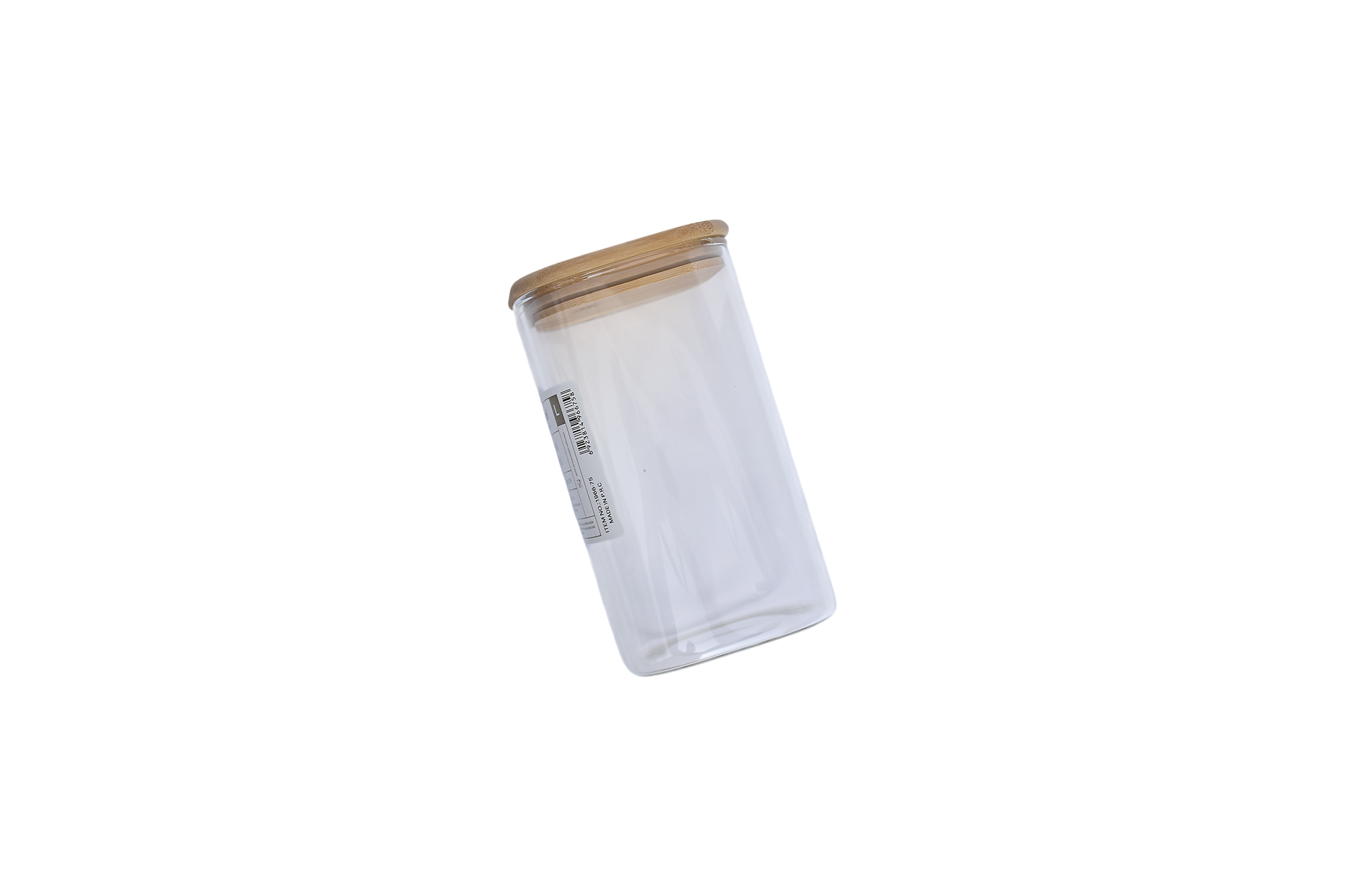 Square glass jar with a wooden lid, capacity 1.4 liters.